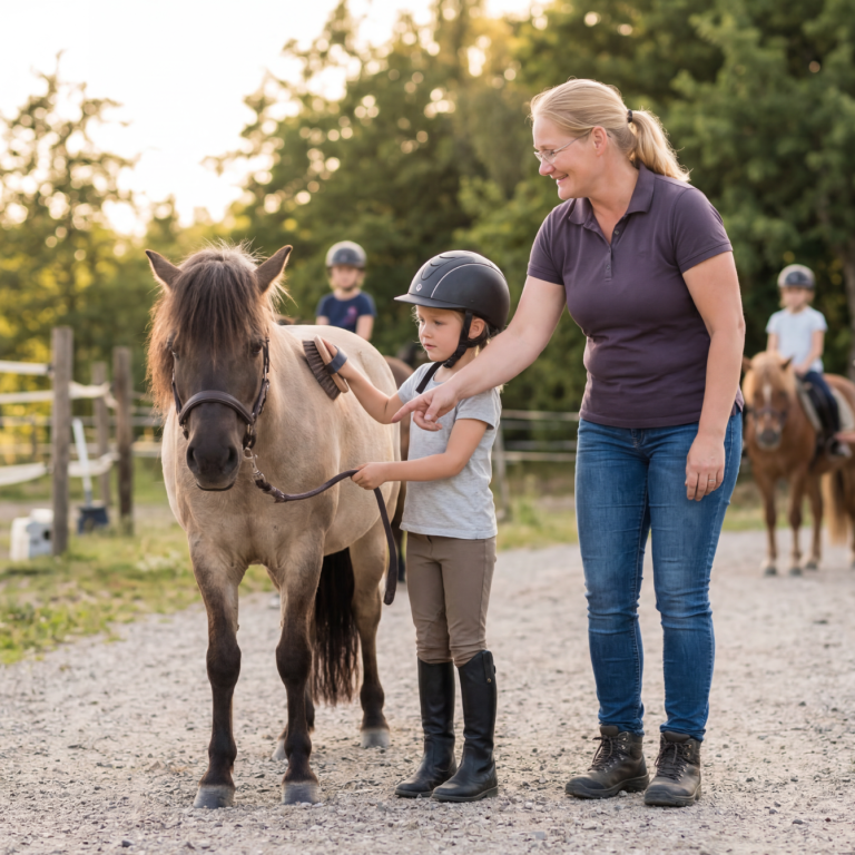 Du begleitest Kinder auf ihrem ersten Weg mit Pferden und gestaltest Unterricht, der Vertrauen, Bewegung und Freude fördert.
